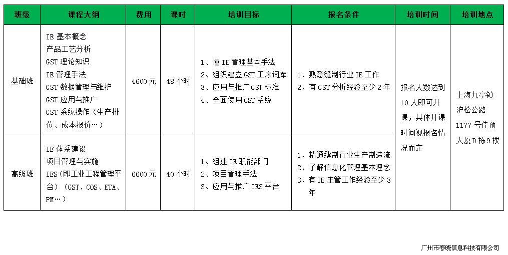 鉴于目前缝制行业IE方面的人才比较欠缺,以及众多行业从业人员希望有学习的机会,浦京将根据行业需求,携手创定公司,在上海组织开展IE相关培训班,欢迎大家报名!具体如下: