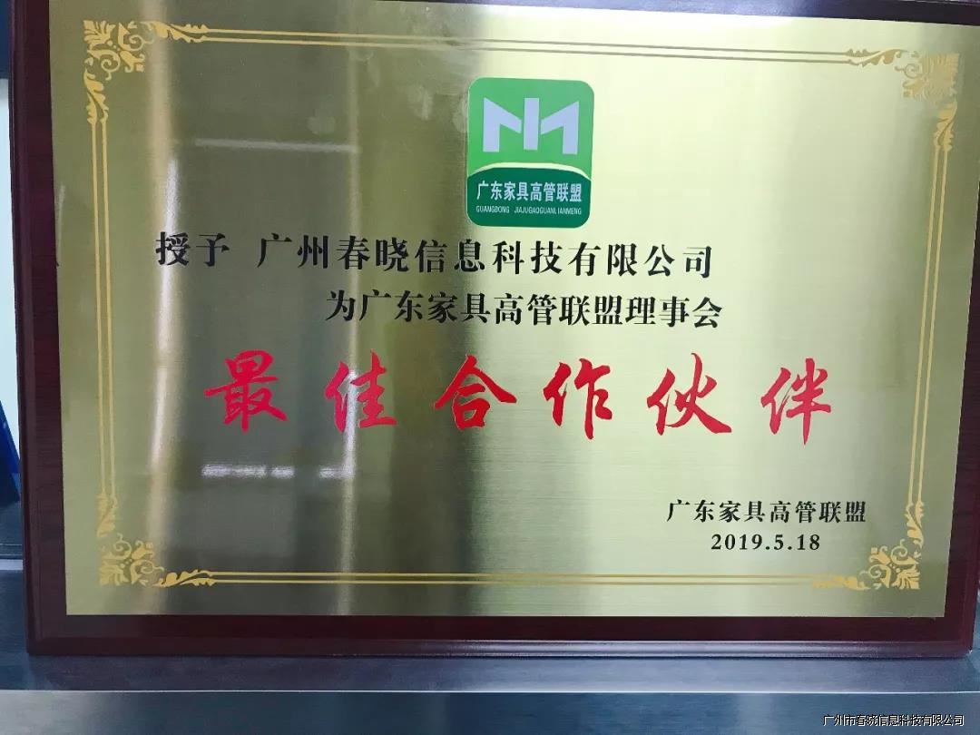广州浦京科技评为“广东家具高管联盟-家具行业-最佳合作伙伴”